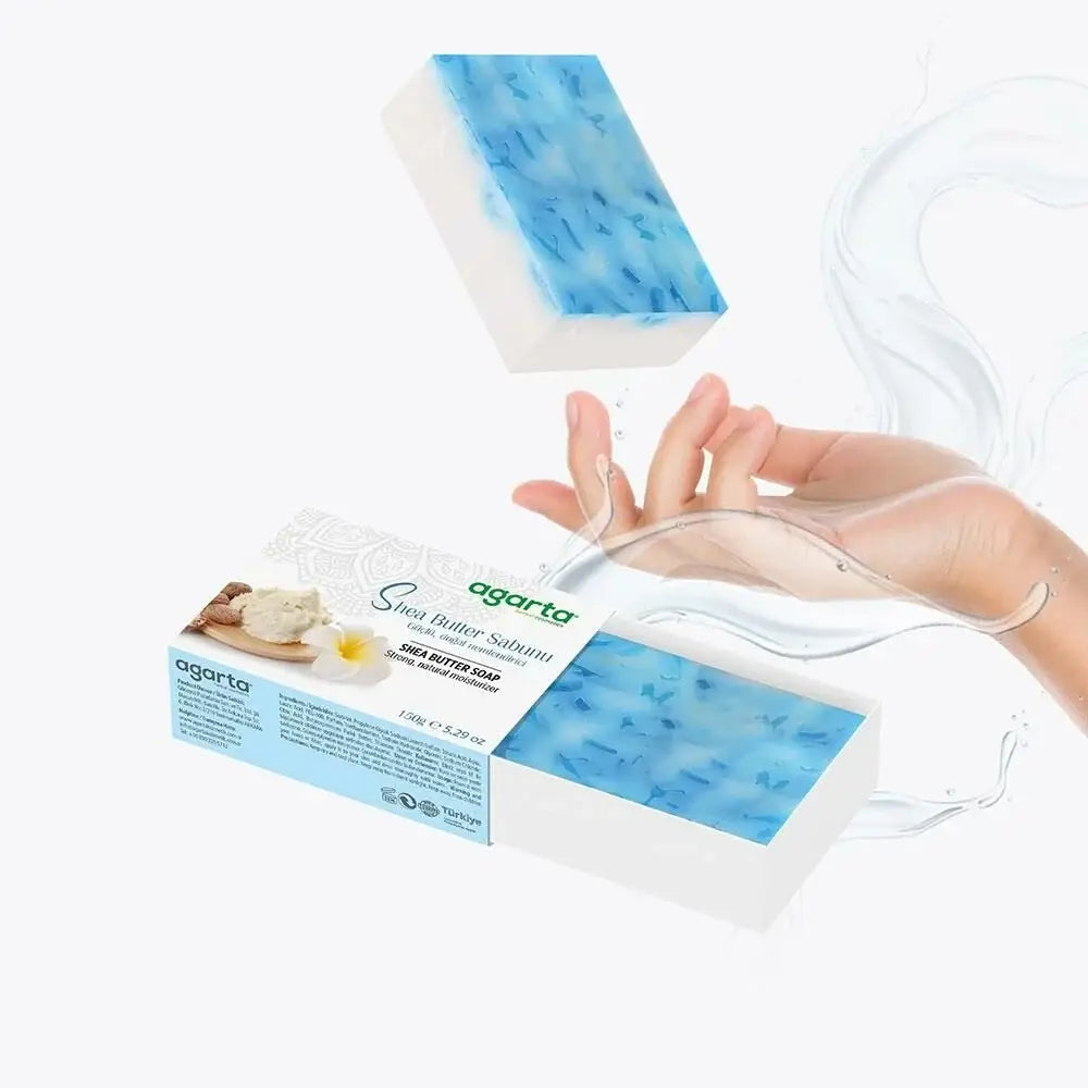 Die agarta Handgemachte Natürliche Shea Butter Seife ist eine 100 % natürliche, Halal-zertifizierte und vegane Seife, die Haut und Haare sanft reinigt. Mit Shea Butter, Vitamin E und Vitamin D unterstützt sie die Hautpflege und kann zur täglichen Reinigung von Händen, Gesicht, Körper und Haaren verwendet werden.